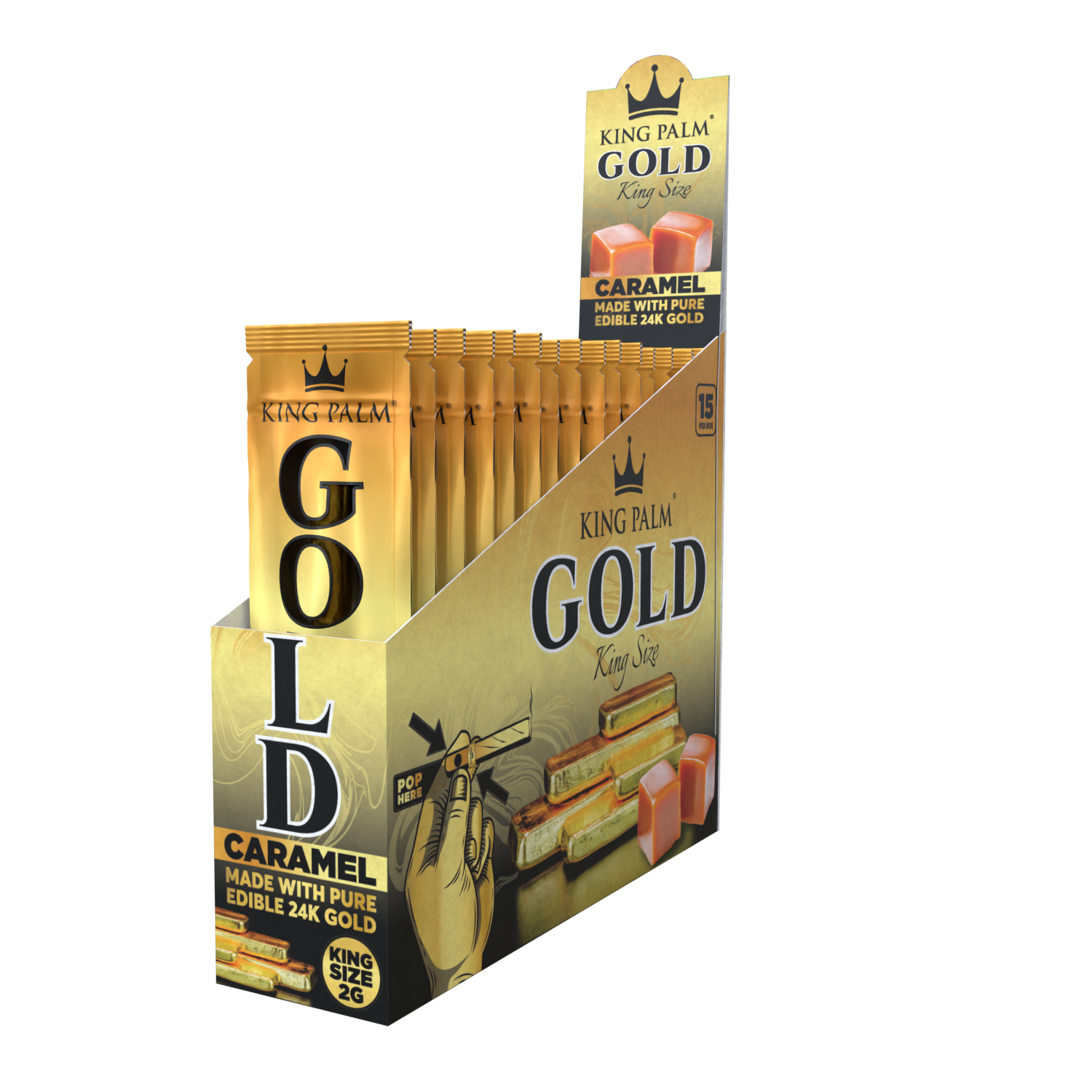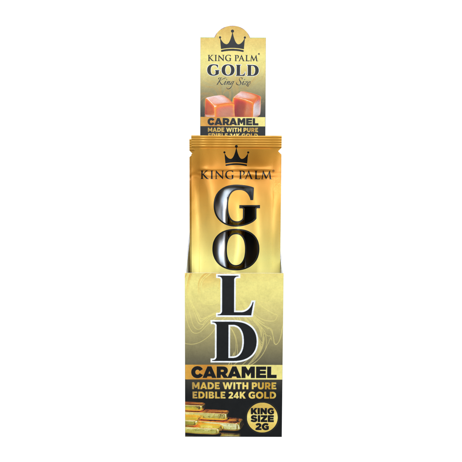 Introducing the King Roll – Caramel Gold, now available in a sleek display box containing 15 units, crafted for smoke shops and retailers looking to enrich their product selections. These premium leaf cones are wrapped in gold, ensuring a luxurious slow burn that’s completely tobacco-free, with the added taste of a caramel flavor filter tip.