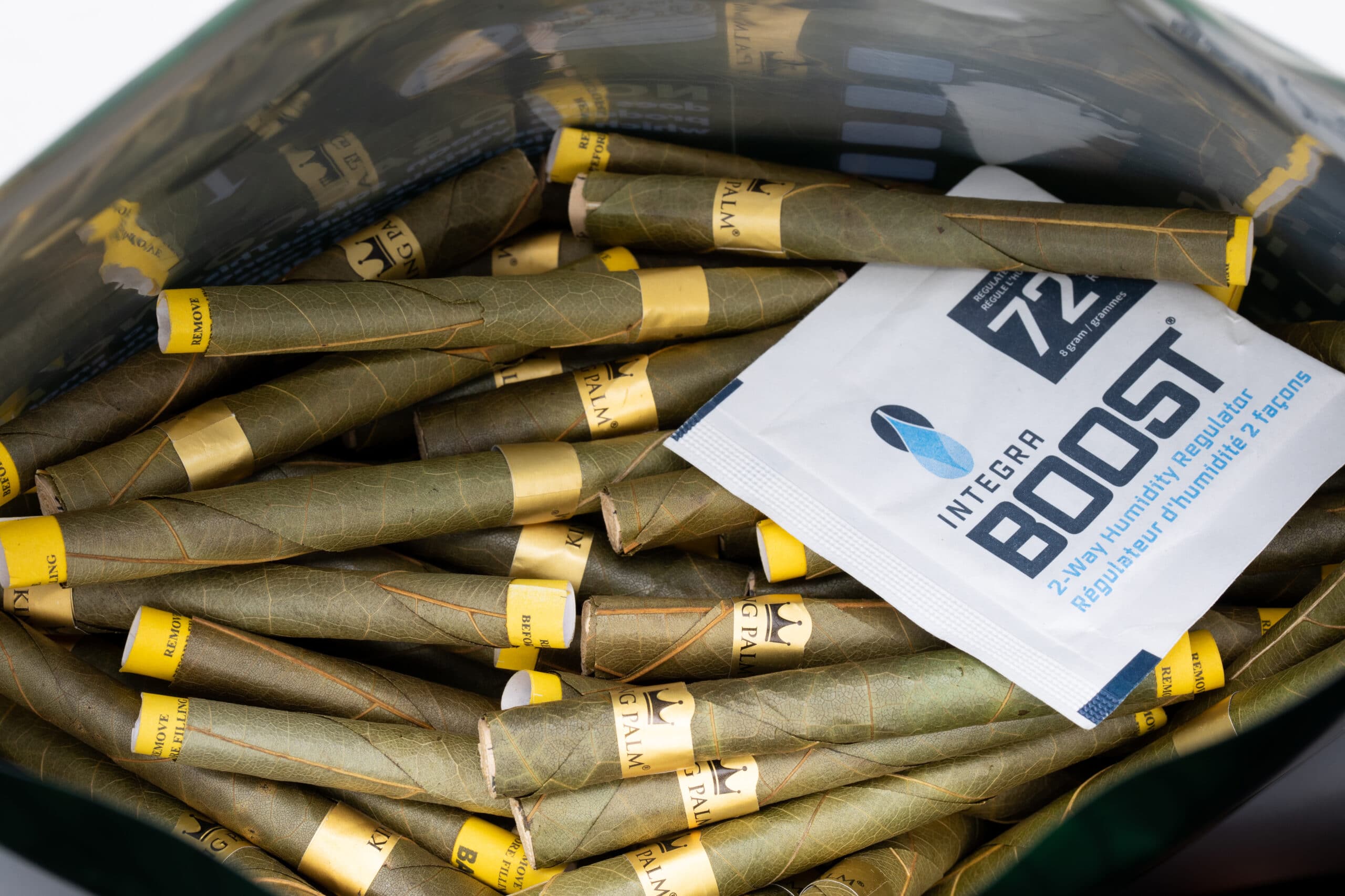 Commercial entities are able to purchase 180 Rollies pre-rolled palm rolls made from 100% natural palm leaves in bulk packages from the King Palm company.