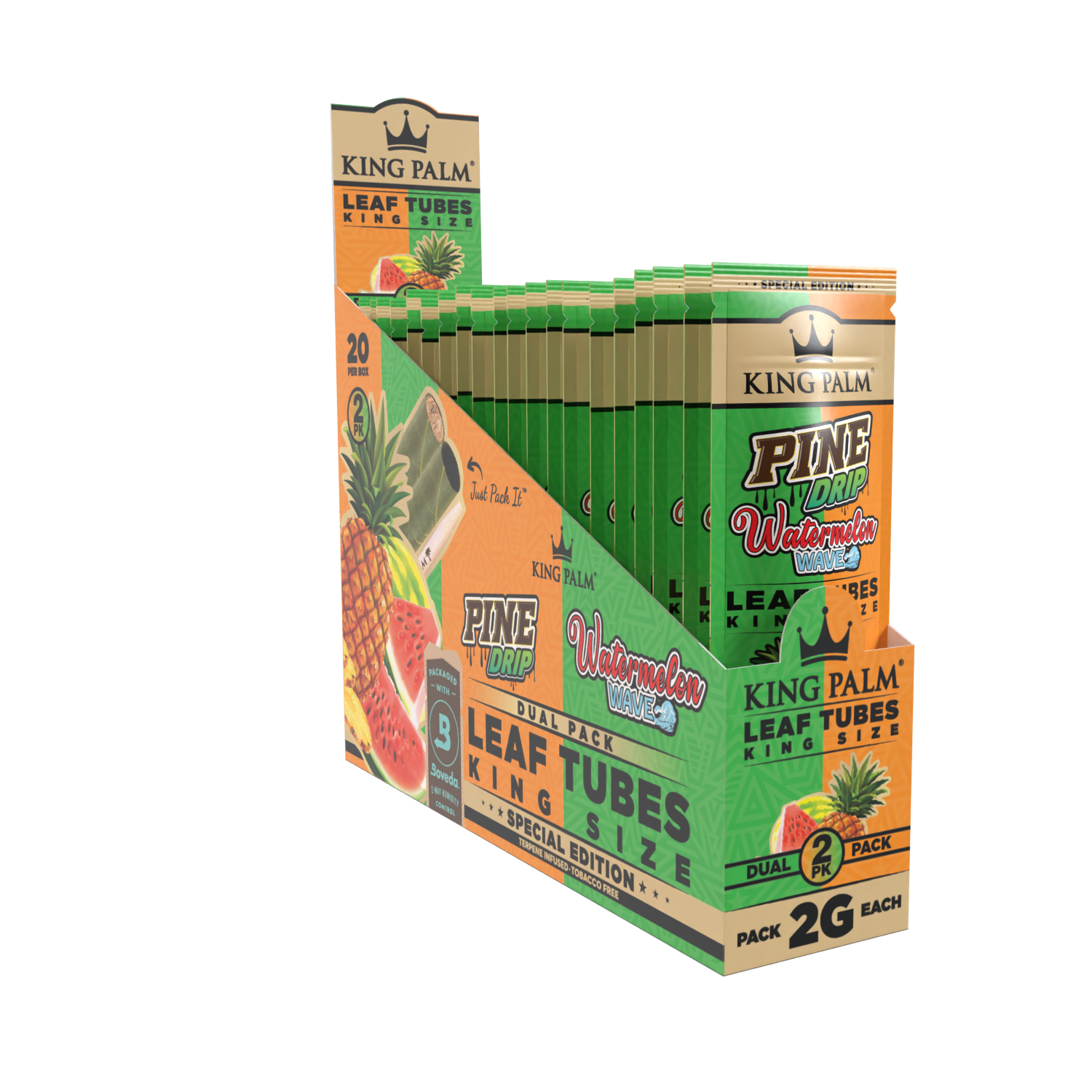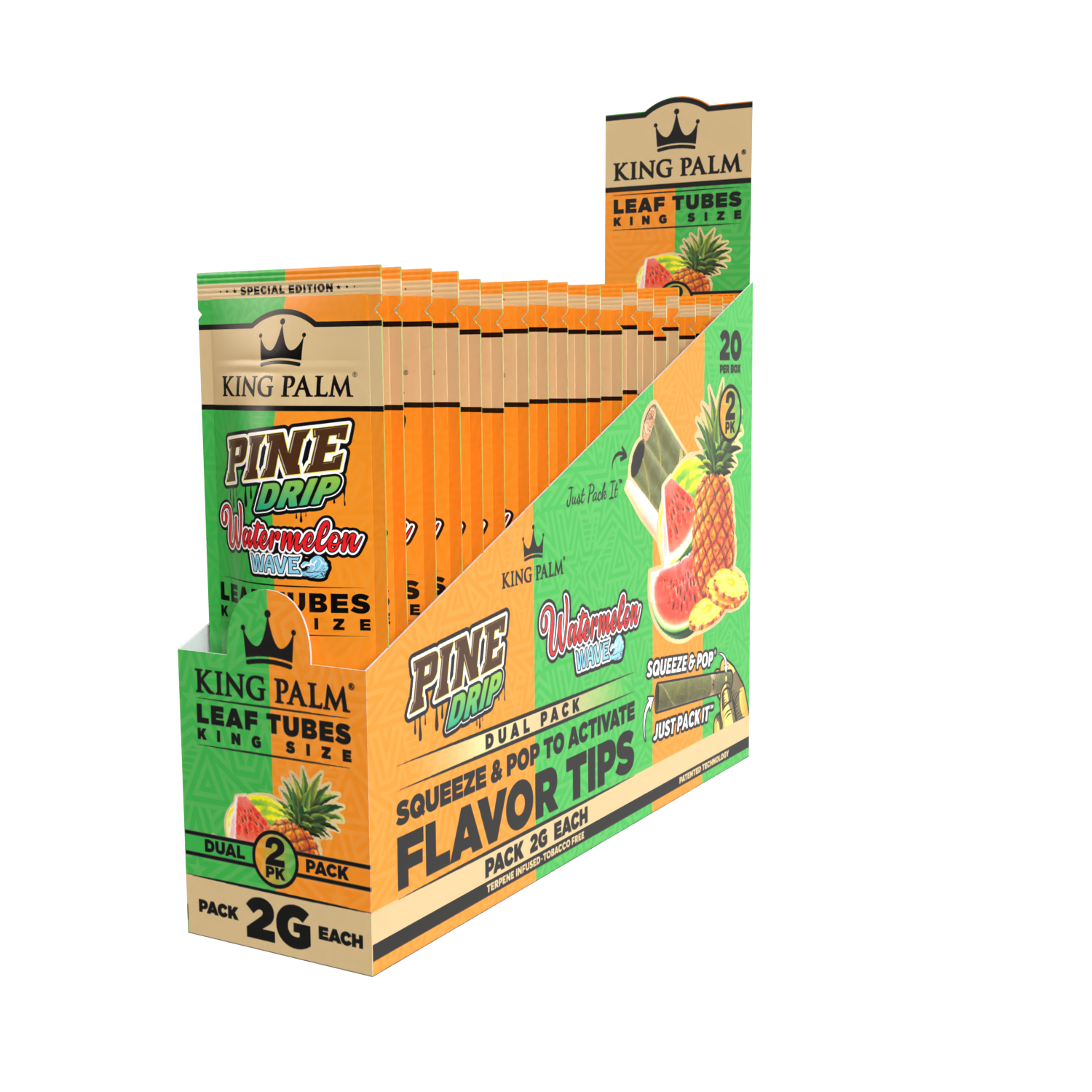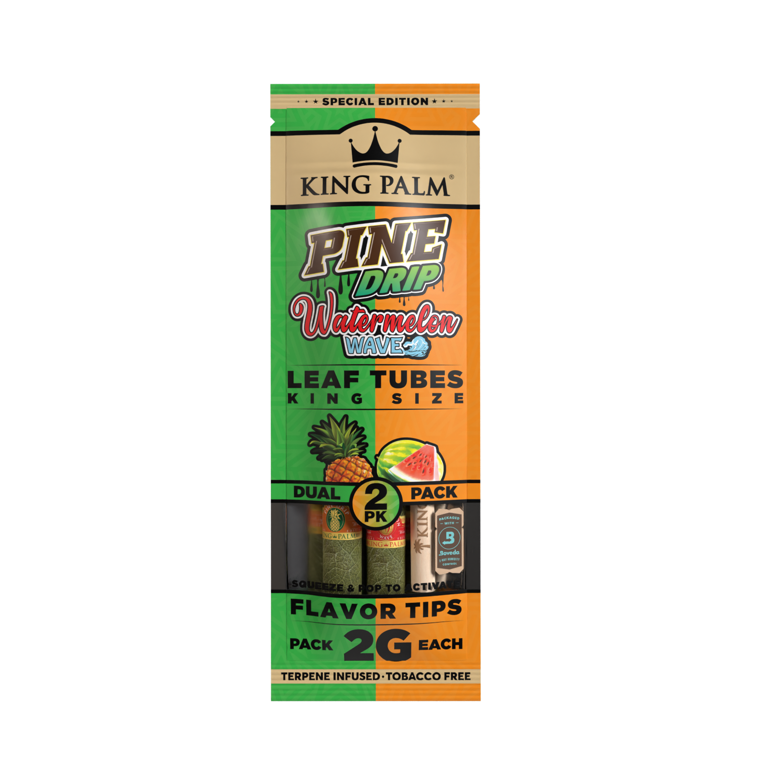 King Palm’s new king-sized Dual Pack will leave you wanting more. Experience the flavors of tangy, sweet pineapple in one roll and fruity notes of watermelon in the other.