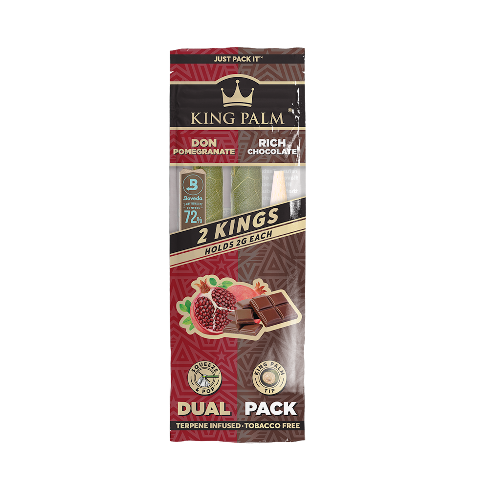 King Palm’s new king-sized Dual Pack will leave you wanting more. Experience the flavors of bold pomegranate in one roll and rich chocolate in the other.