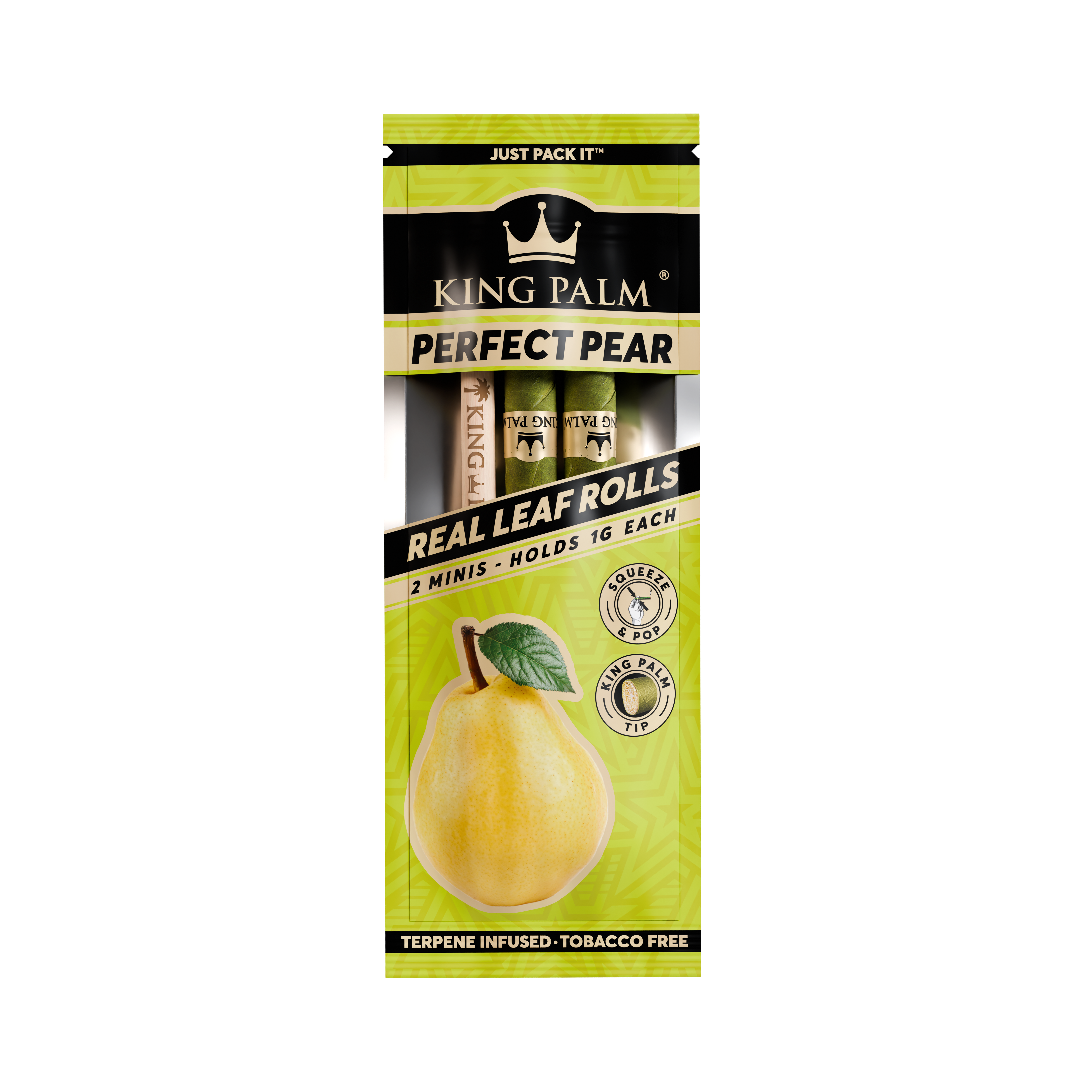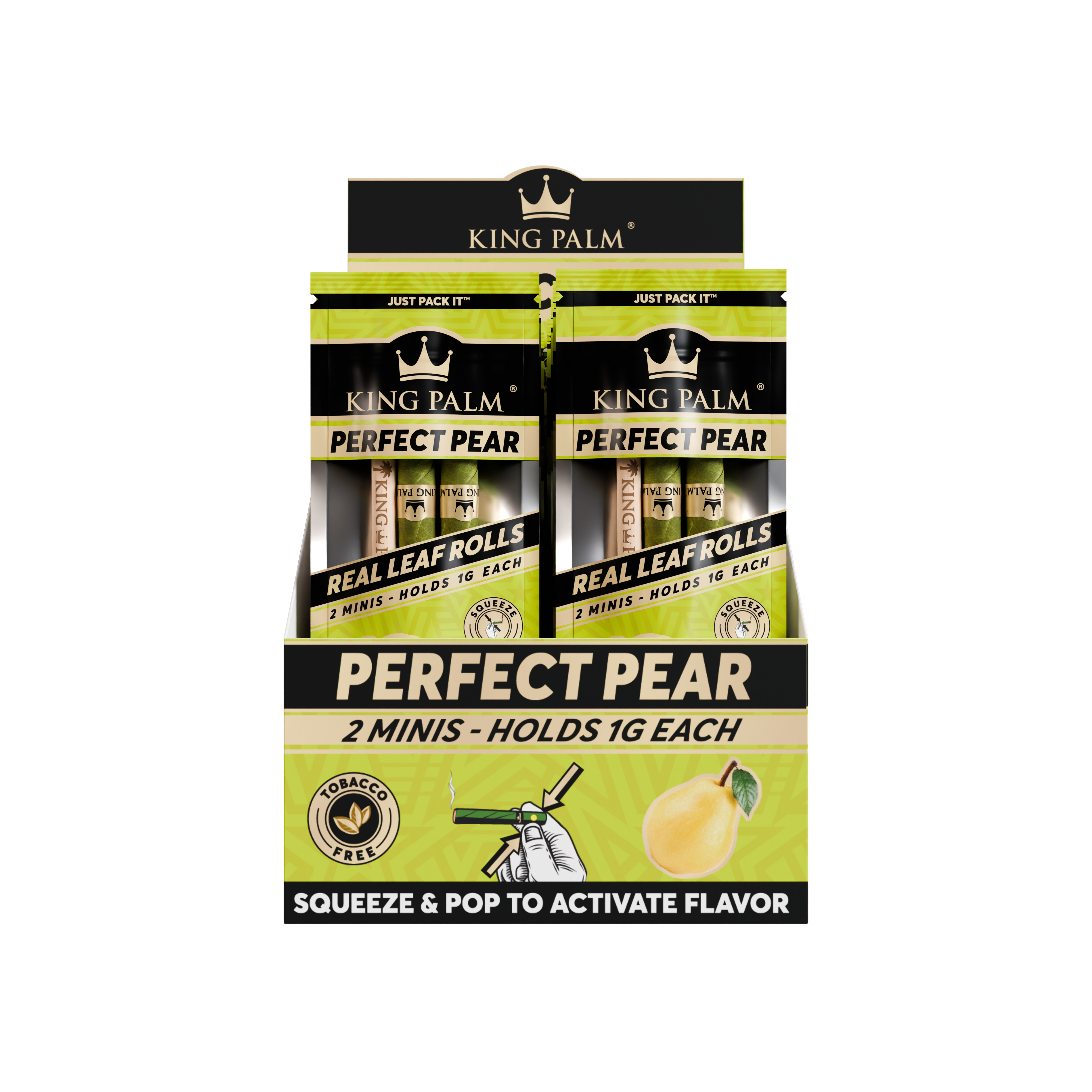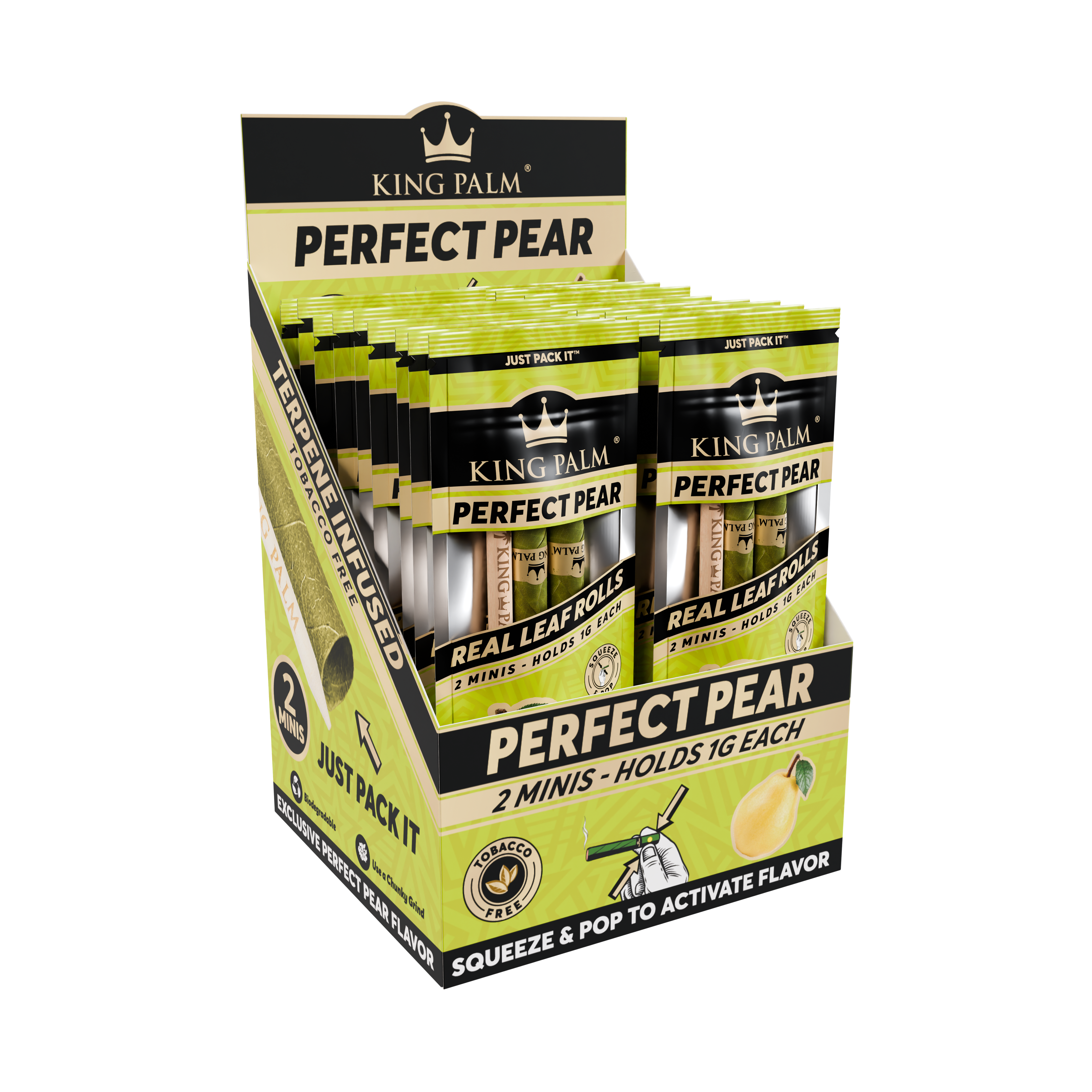 Every display comes with 20 pouches of 2 Perfect Pear Mini Rolls. Set the display box up in your smoke shop to keep a smooth, juicy pear-flavored pre-roll ready to go. Simply pack the end of your King Palm, pop the filter tip whenever you’re ready, and enjoy the crisp, subtly sweet taste of perfectly ripened pears.