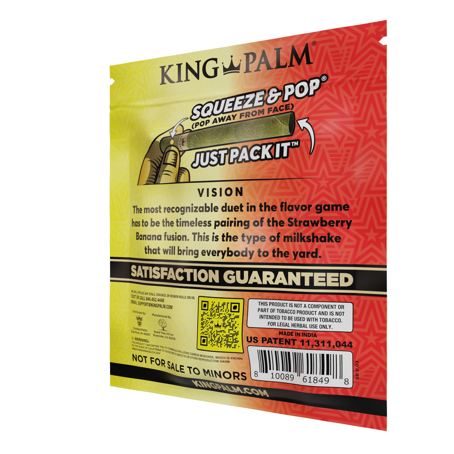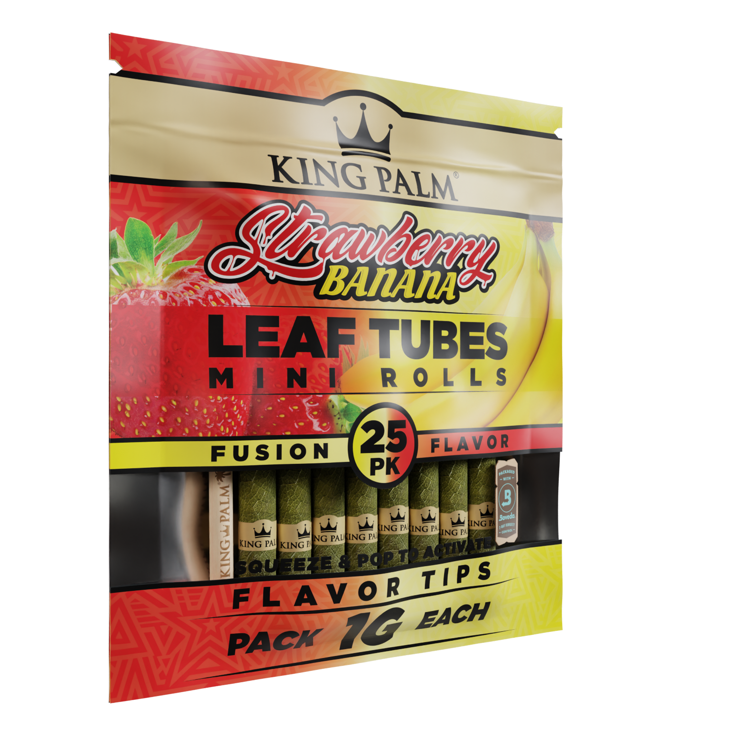 Indulge in the ultimate smoking pleasure with King Palm’s 25 Mini Rolls in Strawberry Banana flavor. Each natural leaf blunt cone holds up to a gram of legal herb, meticulously hand-rolled to perfection. Experience the difference with our flavor-release filter tips – a simple squeeze unlocks a burst of delightful taste, enhancing every puff.