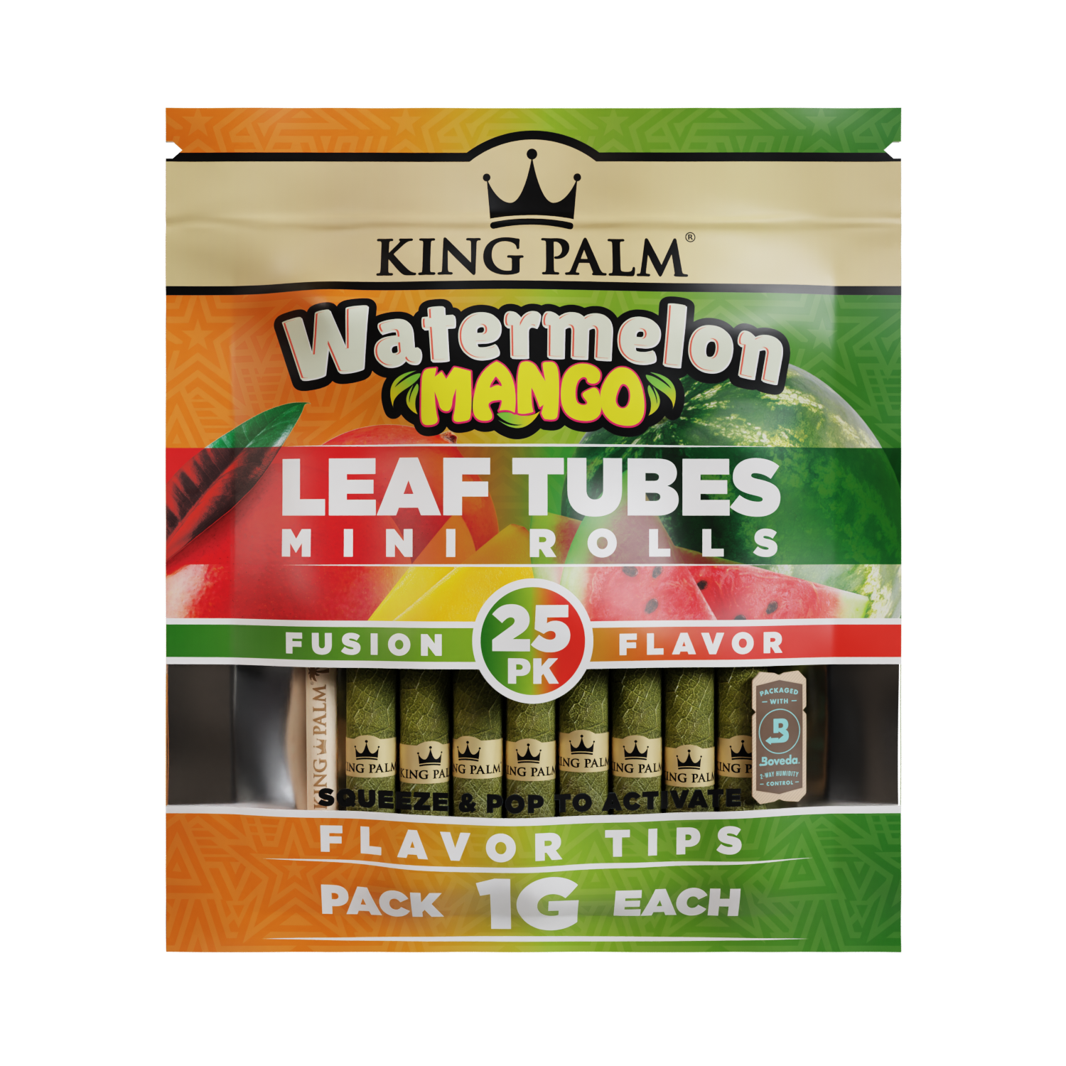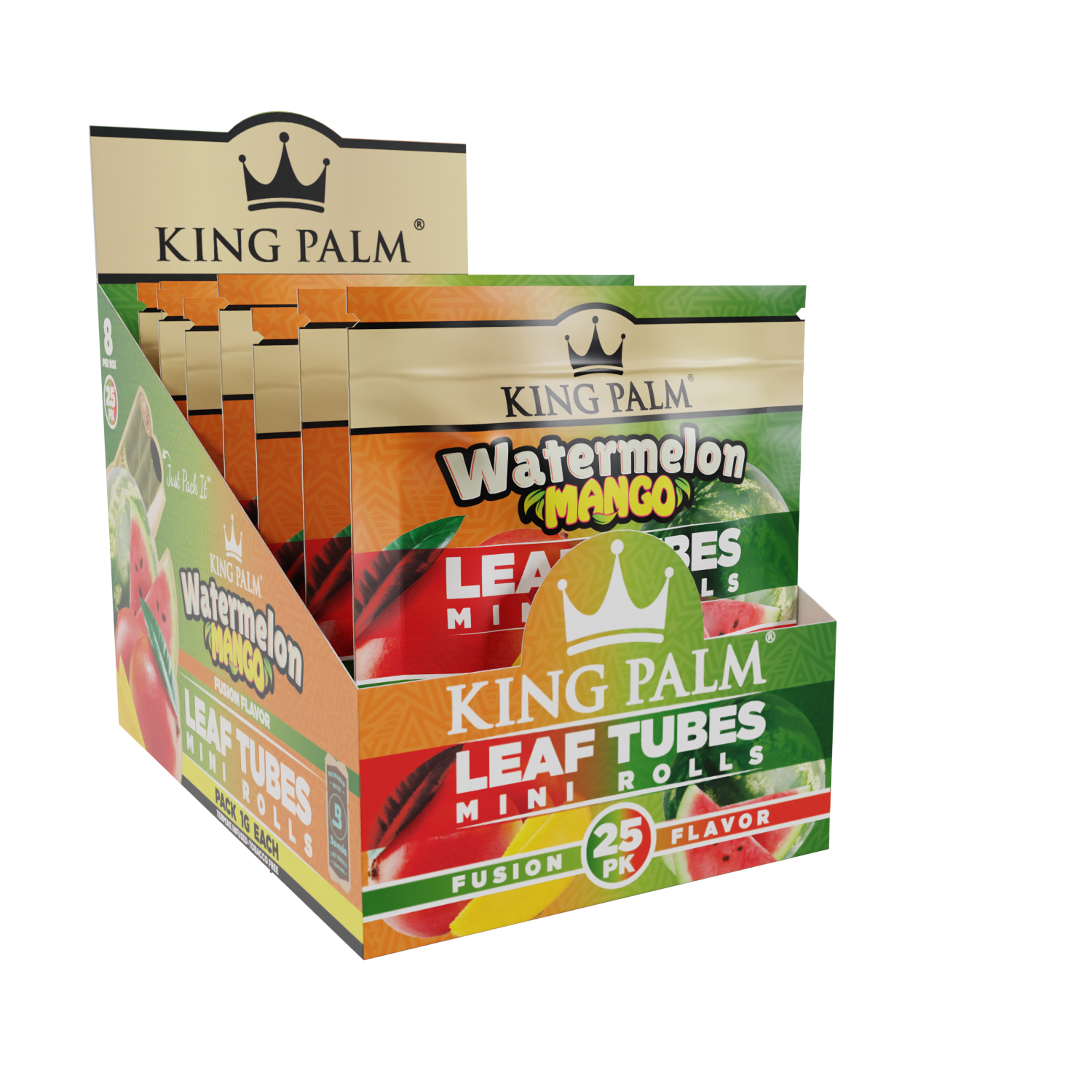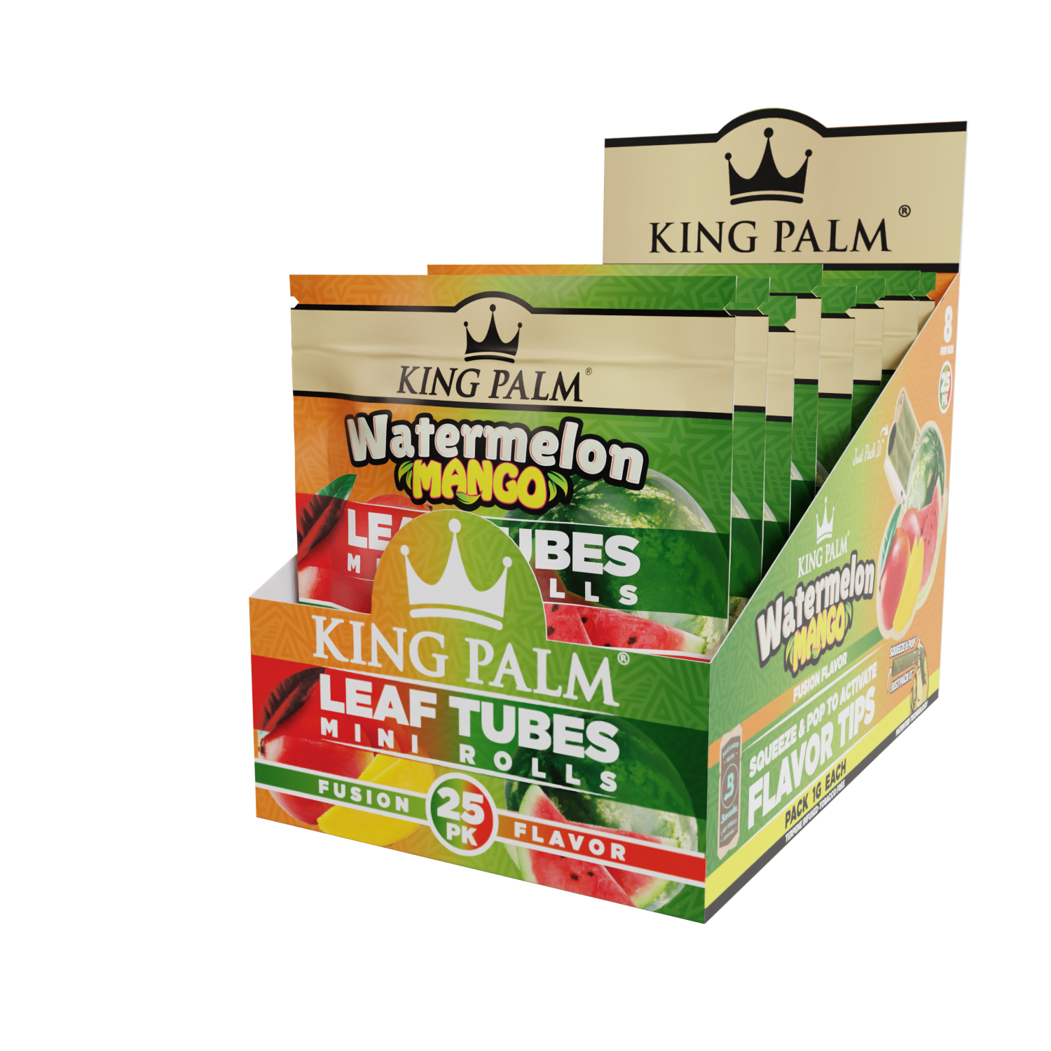 Distinguish your collection and satisfy your customers with the royal smoking experience only King Palm can provide. Countless retailers trust our top-tier smoking products, and now you can too. Order the King Palm 25 Mini Rolls – Watermelon Mango flavor and treat your customers to an unforgettable smoking adventure. Embrace the essence of King Palm and reign supreme in the world of smoking pleasure!