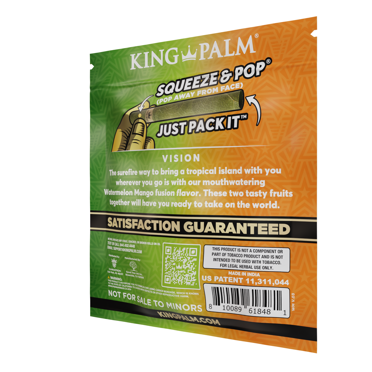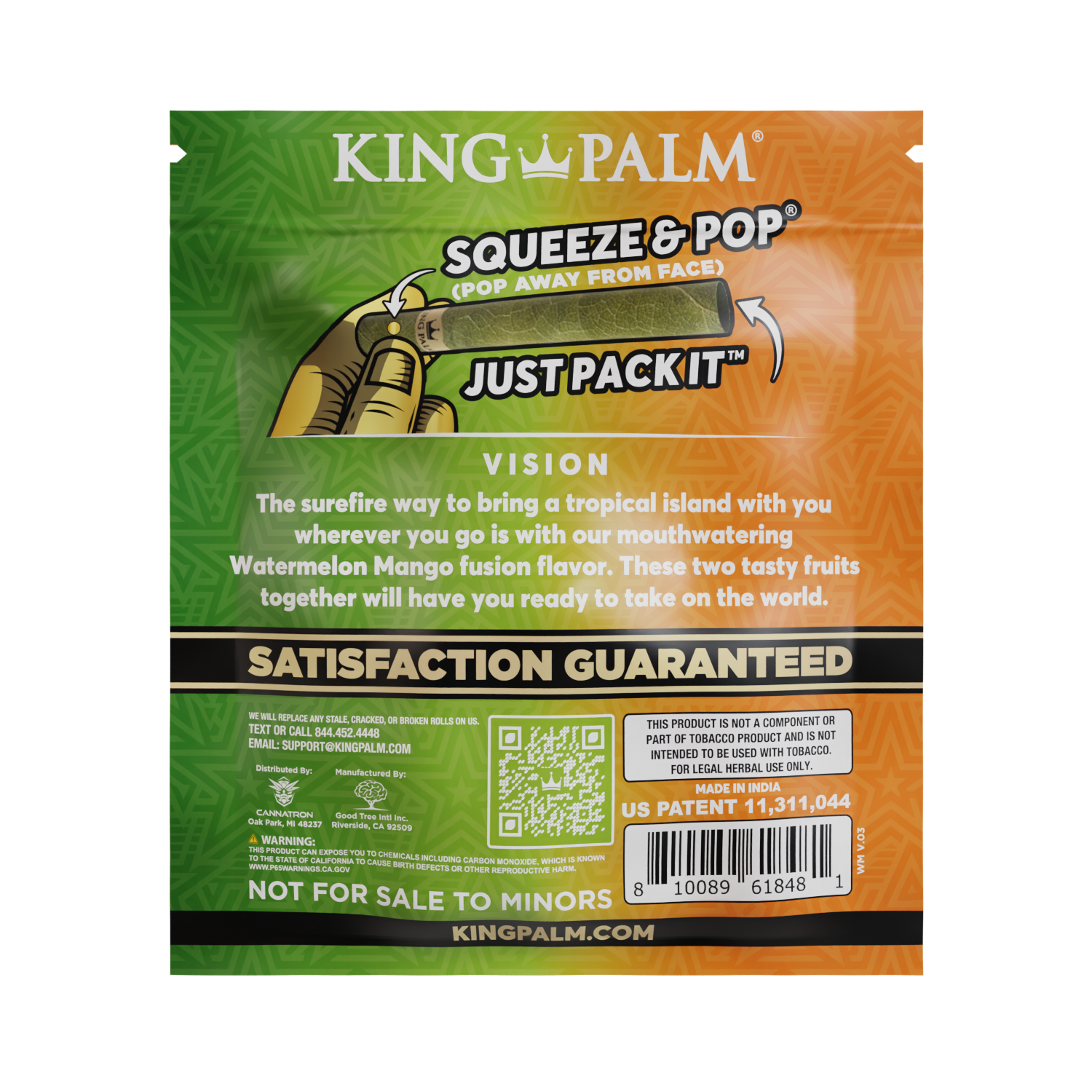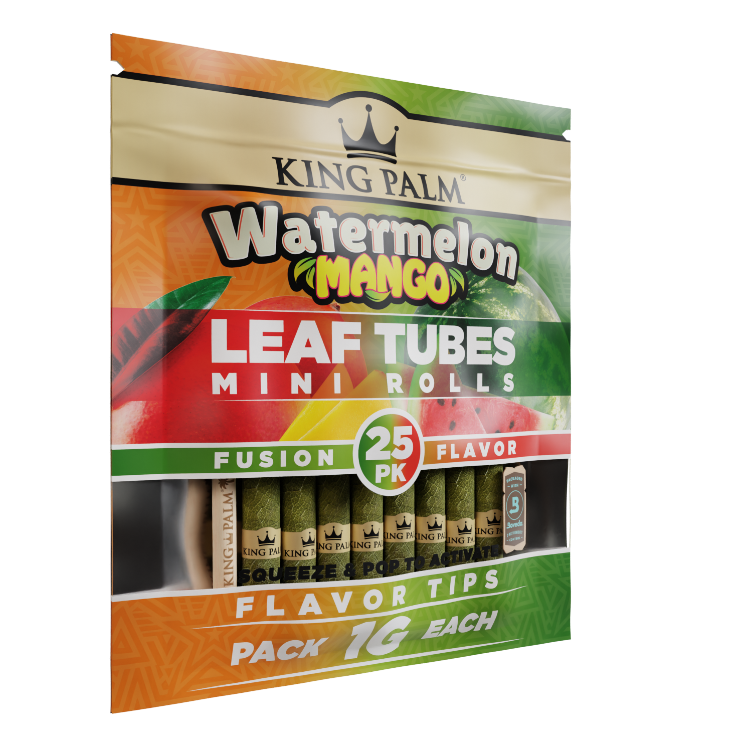 Distinguish your collection and satisfy your customers with the royal smoking experience only King Palm can provide. Countless retailers trust our top-tier smoking products, and now you can too. Order the King Palm 25 Mini Rolls – Watermelon Mango flavor and treat your customers to an unforgettable smoking adventure. Embrace the essence of King Palm and reign supreme in the world of smoking pleasure!