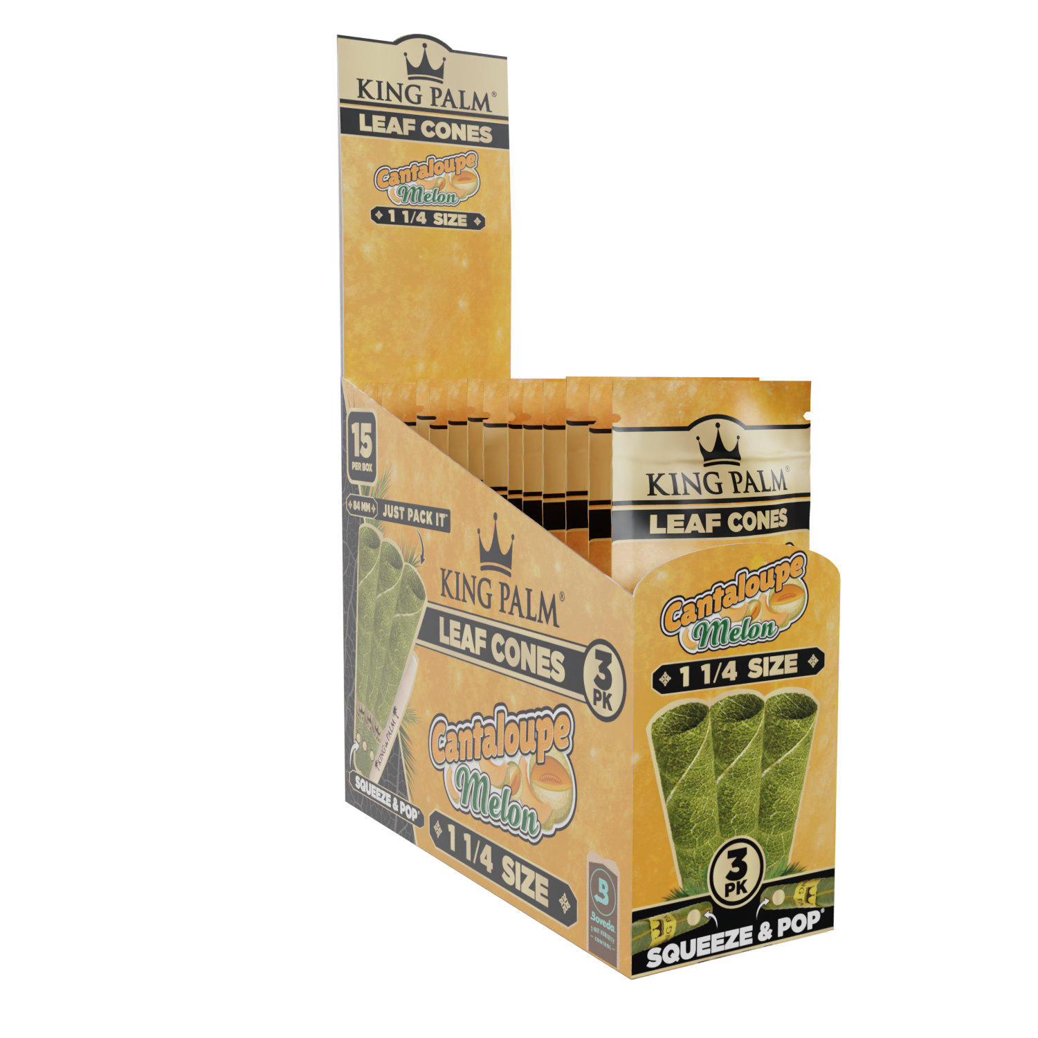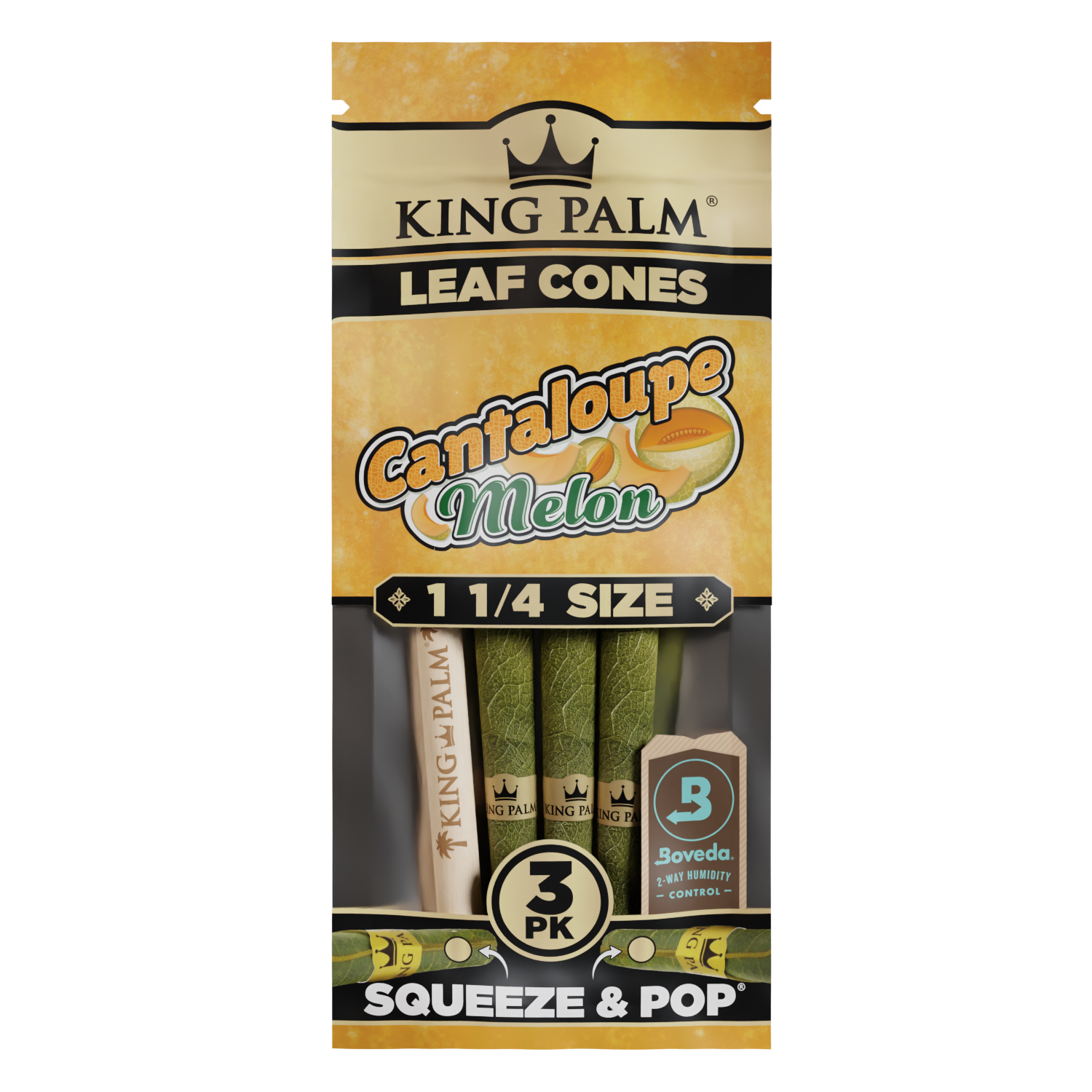 These Cantaloupe Melon wholesale flavored blunt cones measure 1 ¼ (84mm) and hold just a little over a half-gram of herb. Boveda packs in each pouch of 3 ensures each one stays fresh until ready to be enjoyed.