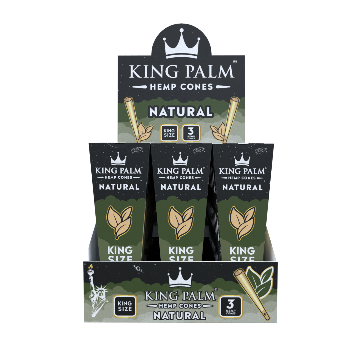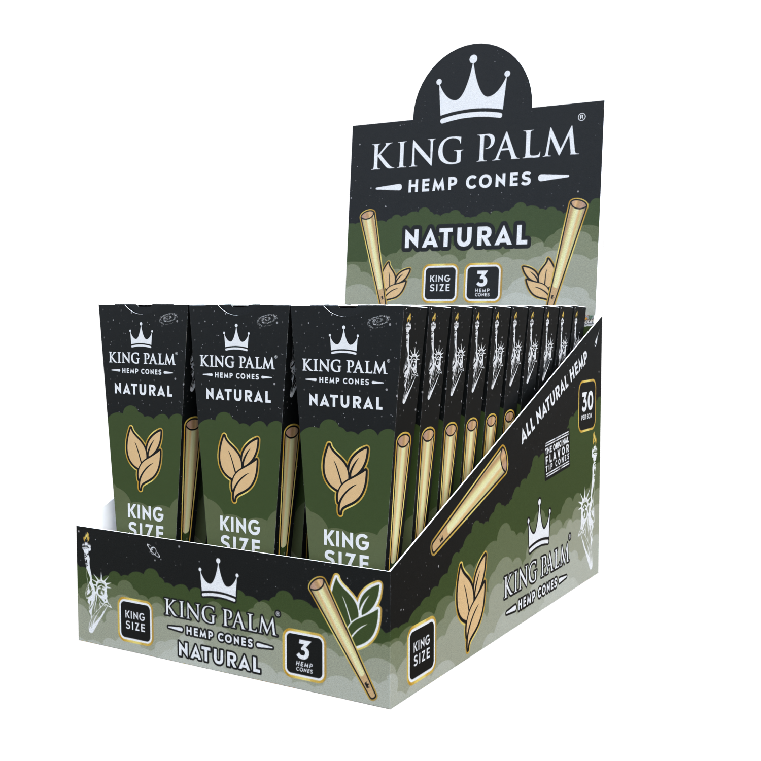 3 Hemp Cones – King Size – Natural – Display Box – 30 Units Per Display