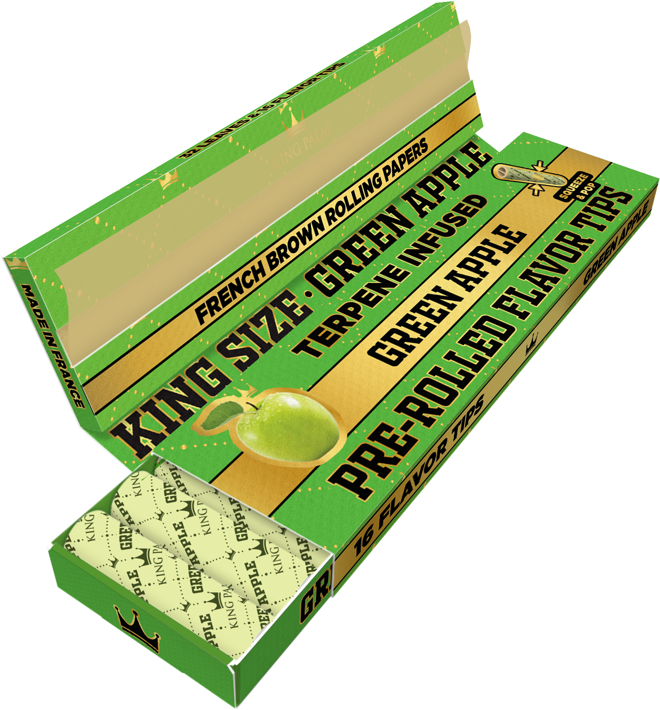 Each booklet contains 24 King size French Brown papers and 16 Green Apple tips.
