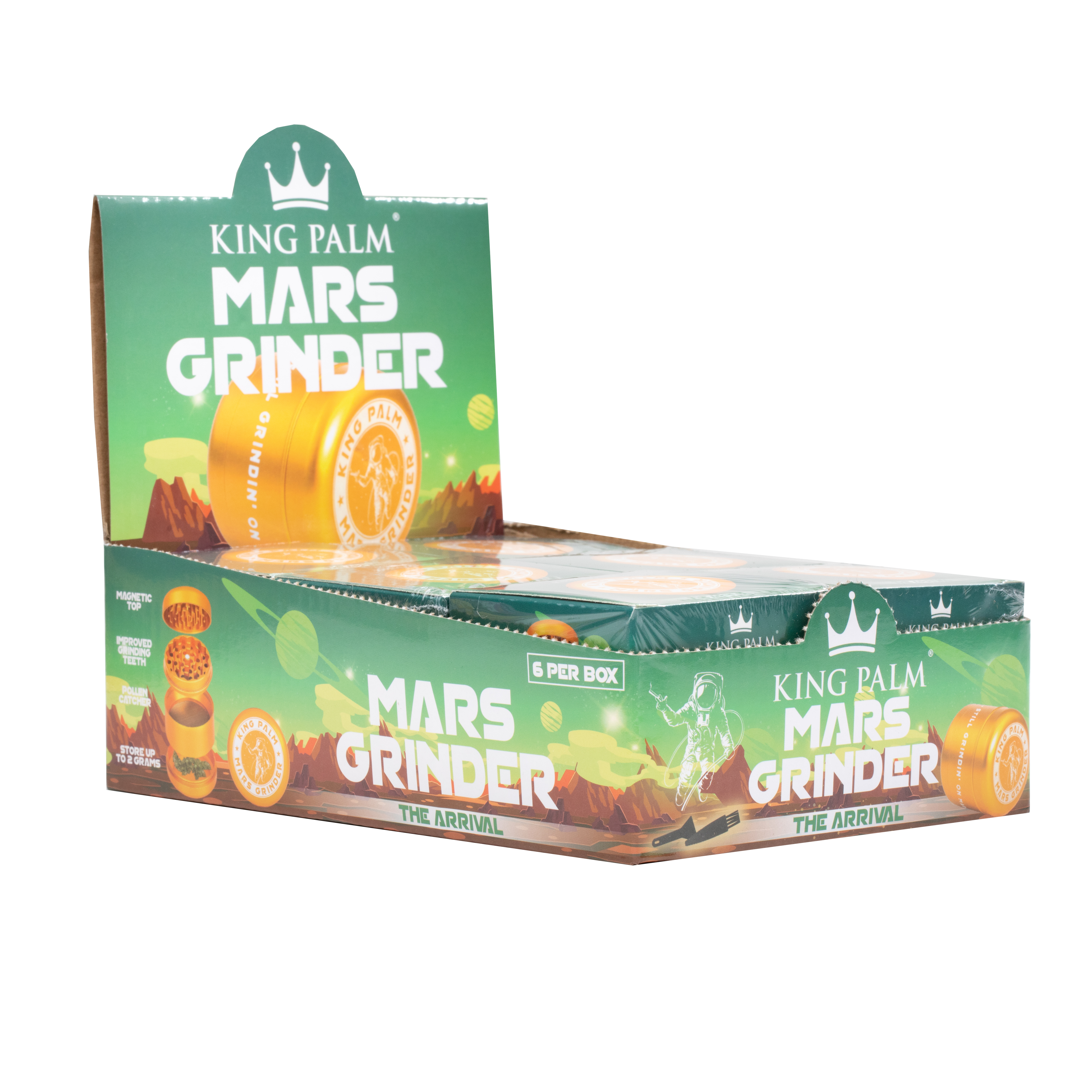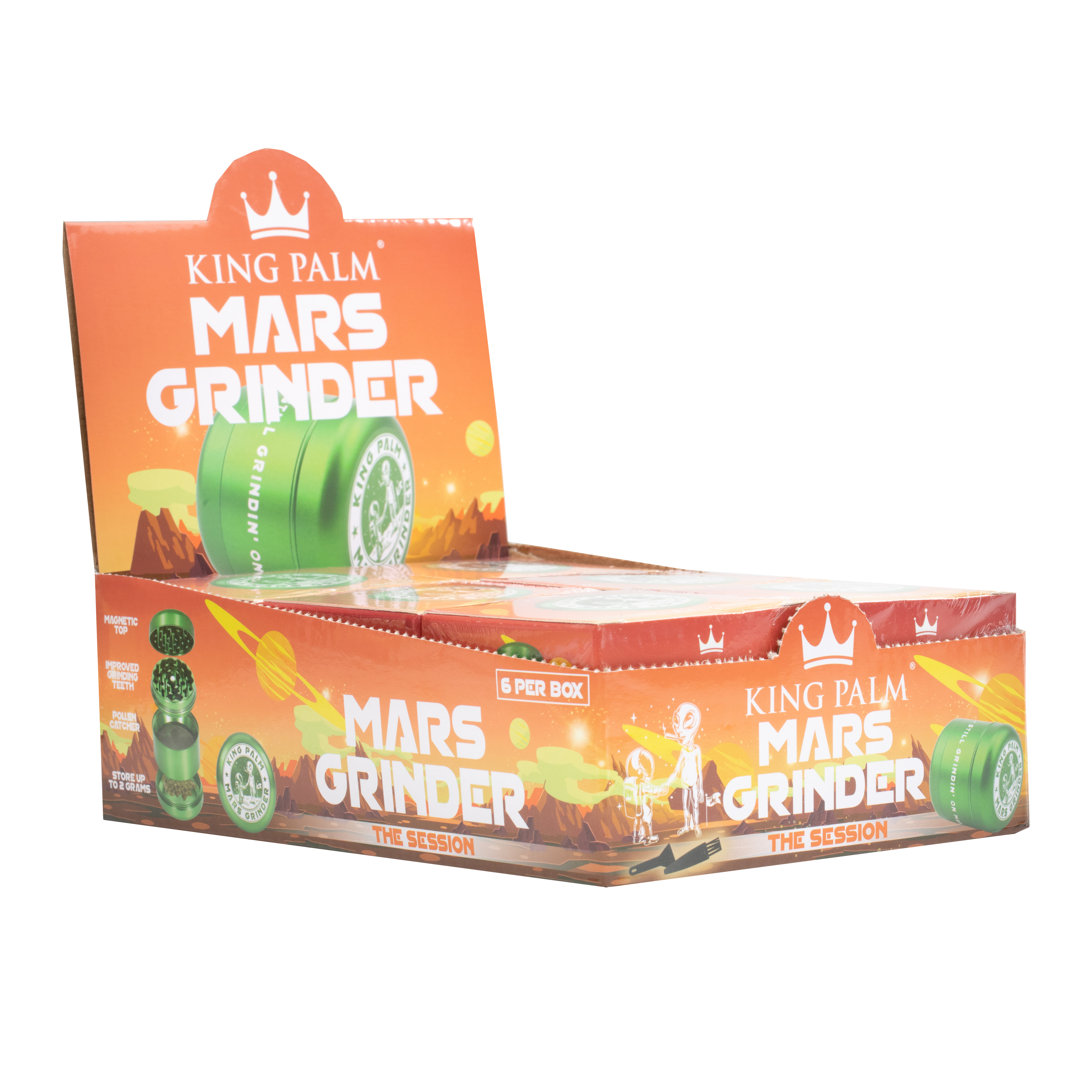 When you are ready to occupy Mars, you’re going to need to take this lightweight aluminum grinder with you. Its new rounded shape feels sleek as a spacecraft and ensures a smooth trip into orbit. Enjoy one of the rare elements of Mars in the palm of your hand. Featuring a magnetic top, this collectible metal herb grinder has improved grinding teeth and a screen catcher.