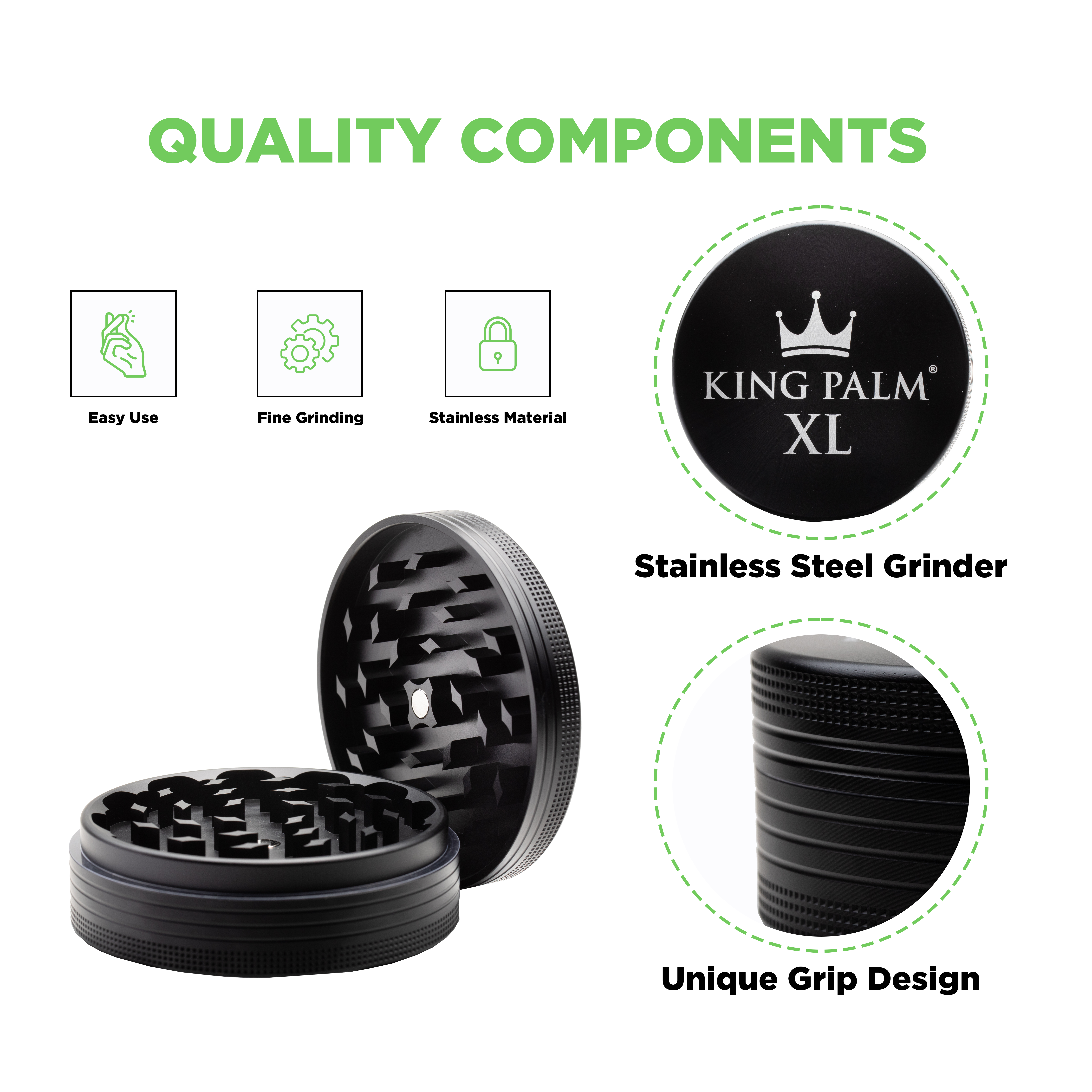 This high-quality two-piece grinder is the perfect accessory to any smoking collection. The sleek black grinder cuts through your herb with ease, grinding it up into a wonderful chunky consistency. King Palm crafts this grinder using anodized aluminum and a ceramic coating for ultimate durability.